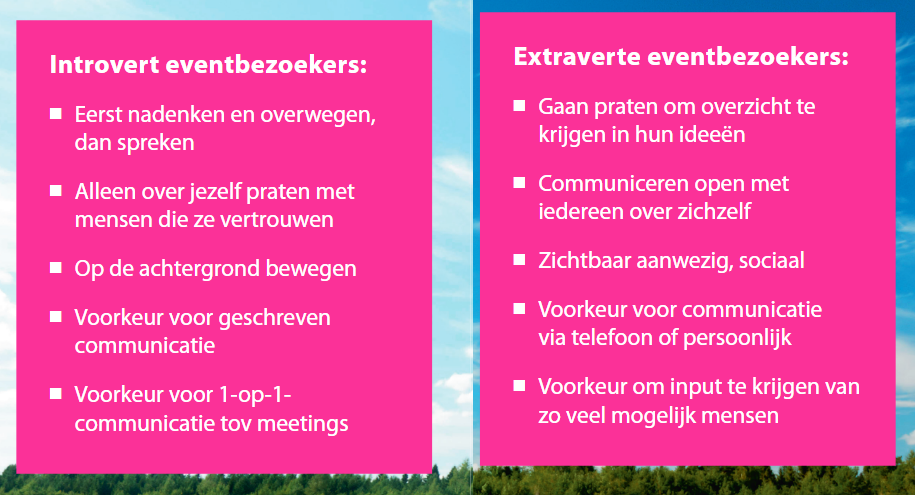 Tot slot de verschillen tussen introverte en extraverte eventbezoekers op een rij: